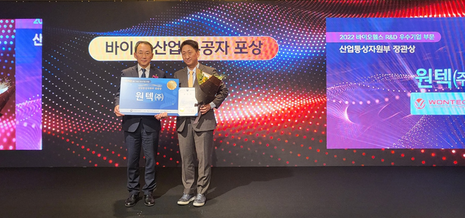 원텍(Wontech)은 지난7일, 2022년 바이오 기업인의 날 행사에서 바이오헬스분야 R&D 우수기업에 선정되어 산업통상자원부 장관표창을 수상했다.